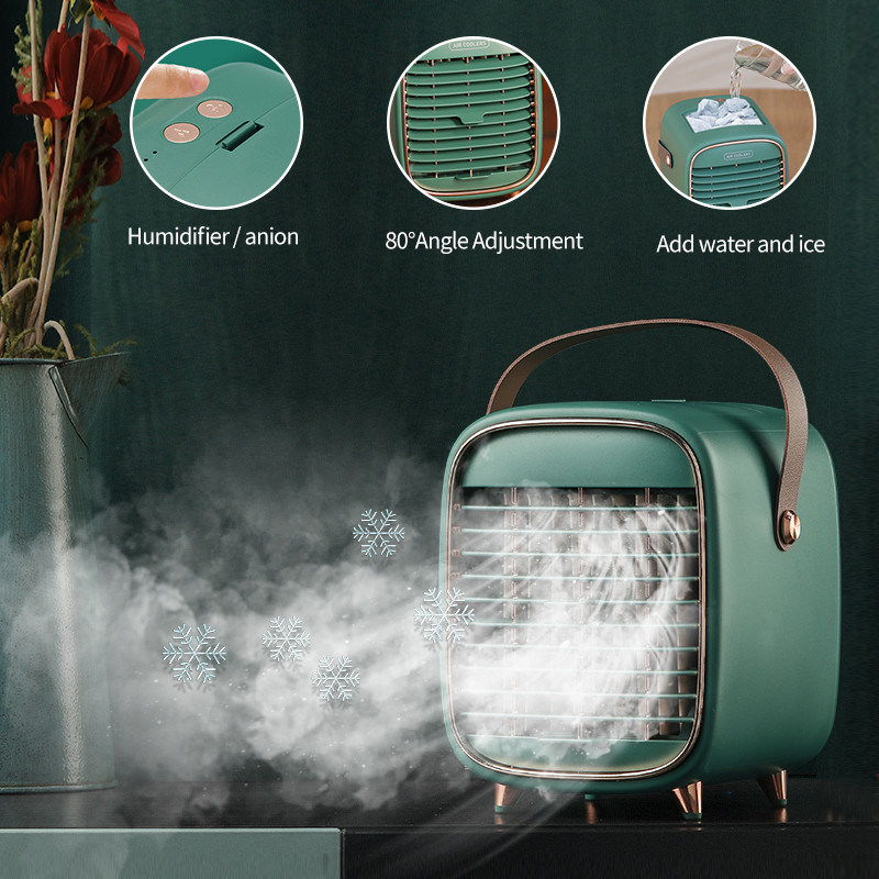 | Làm nổi bật: | Pin Quạt làm mát không khí 2000mAh,Quạt làm mát không khí để bàn,Máy điều hòa bay hơi di động 3 tốc độ |
